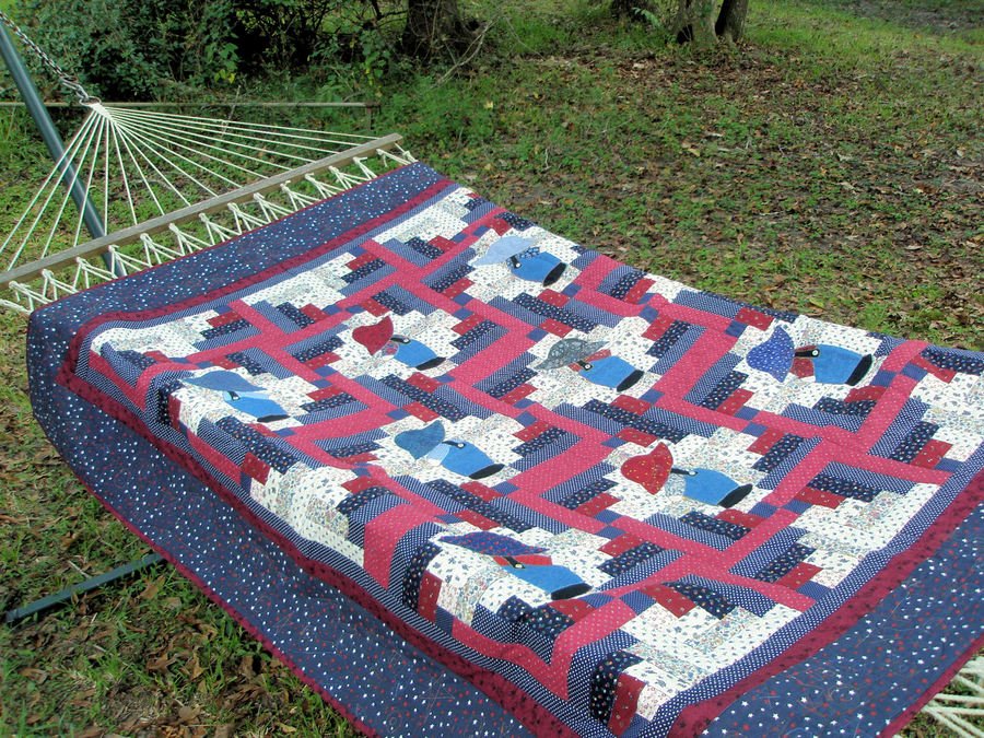 donnagayle Sam's Half Log Cabin - My pattern DGC 2007-001. This is a pattern that I teach to show people how to use my Double-Turn Applique technique. This is a technique I've developed to turn under the edges of the applique pieces 2-4 pieces at a time; then they are ready to be appliqued to the background by machine or by hand. This particular one is used to teach how to use Double-Turn Applique to applique blocks that are directional. Since most everyone wants to know how to make a log cabin, they have a choice of either making the traditional log cabin or just the half log cabin.