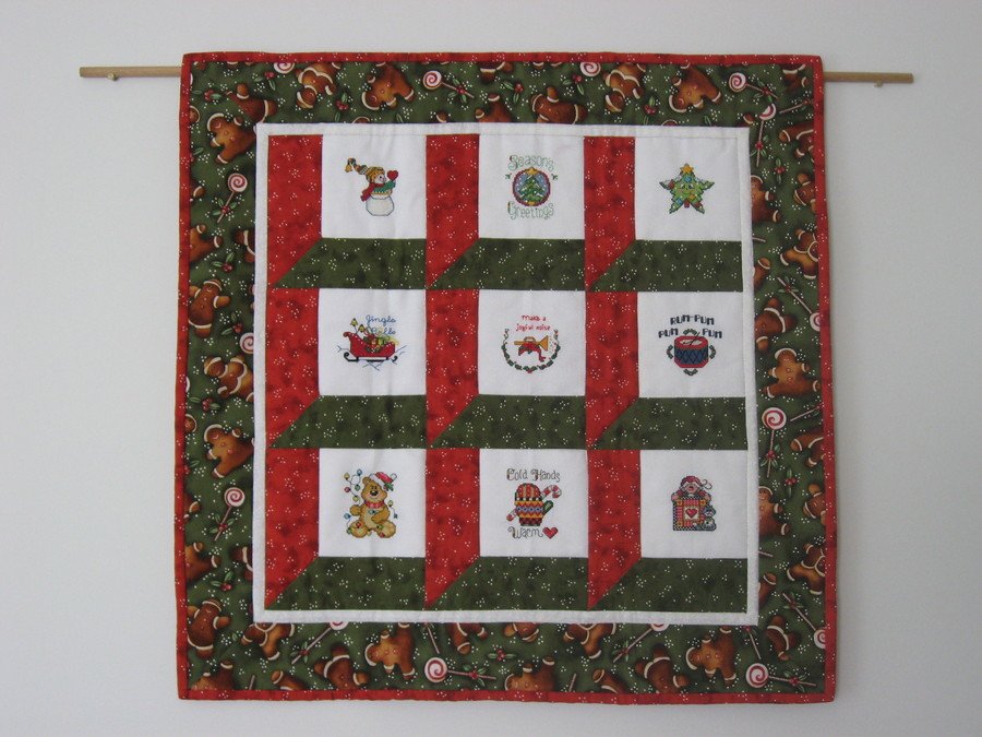 | Design Source - Description | 9 Xmas Cross Stitch designs - some very old were turned into a wallhanging |