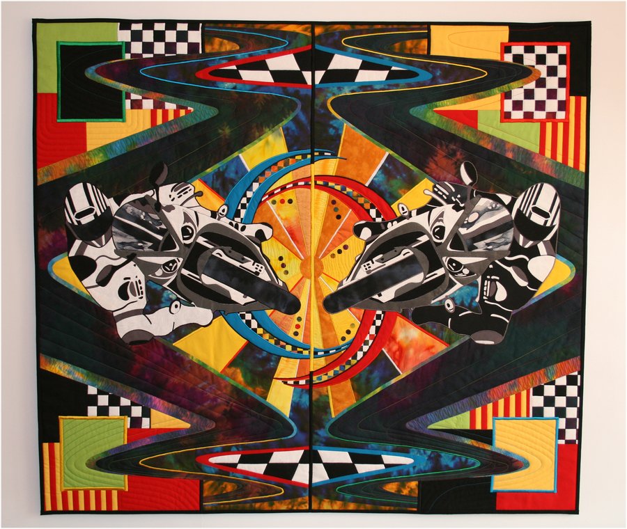RuthyP Sunny in, Sunny out. - Inspired by name of corner at track day. My husband on his Triumph Daytona, speed, noise, sun and all that leather!!Entered Guild challenge themed 'The Road to....'