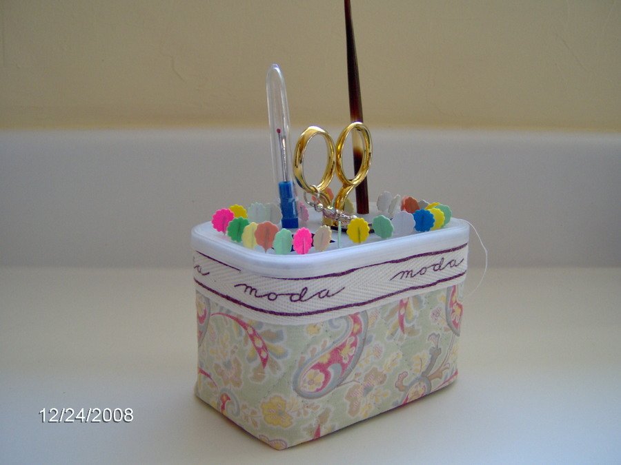 | Design Source - Description | Just thought this was clever and a good way to use up bits of scraps while making something useful to catchall my tools while sewing. |