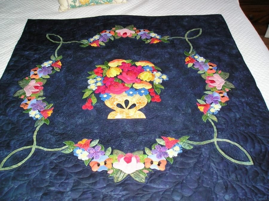 | Design Source - Description | Baltimore block and borders done in Batiks on an indigo background |