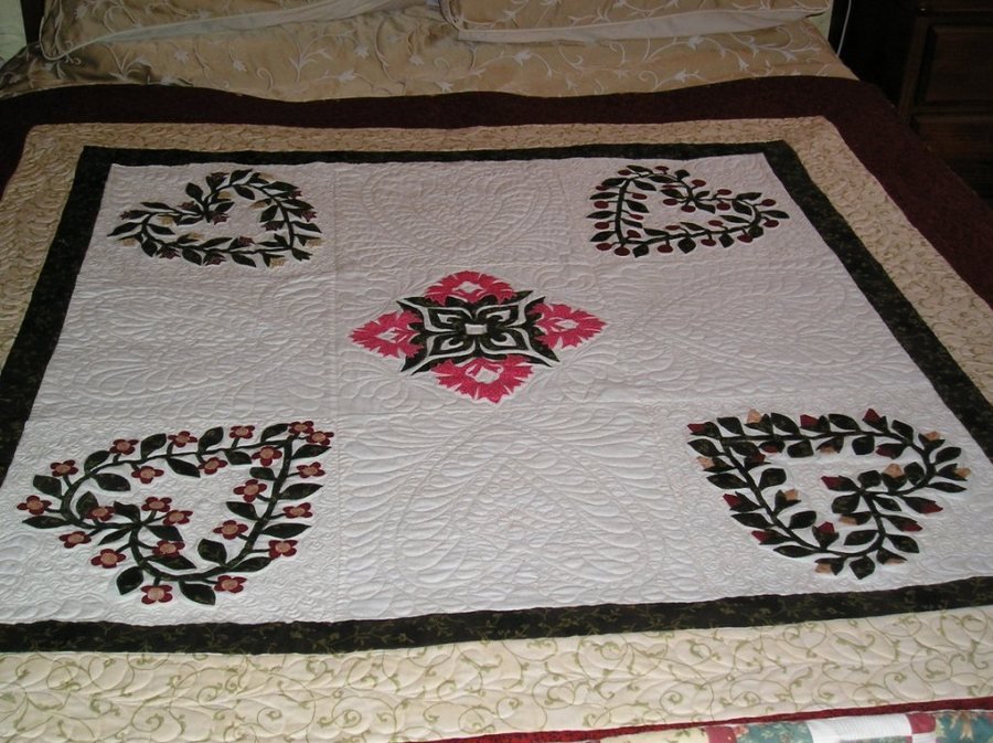 NeilC Hearts are Trumps - I originally completed this quilt as a fund raiser for the hospital that looked after me after my heart attack but the bureaucracy was so unbending that it wasn't possible to raffle the quilt to donate the money raised to the cardiac ward. As a result it now lives on the bottom of the spare bed and I've become rather fond of it not least for the rather fun quilting I did in it. I thought hearts were appropriate for a cardiac ward!