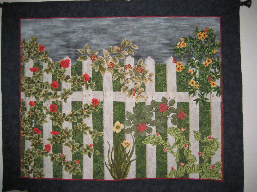 jorji Country Fence - My first attemp at a landscape quilt. Nail holes and shading are added with permanant dye pens.