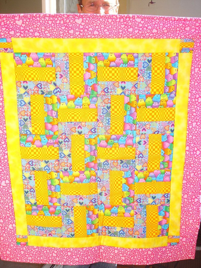 | Design Source - Description | This quilt was designed from some fun fabrics I had for my 5 year old Niece to watch tv with on cold winter nights as a lap quilt. She takes it everywhere with her. |