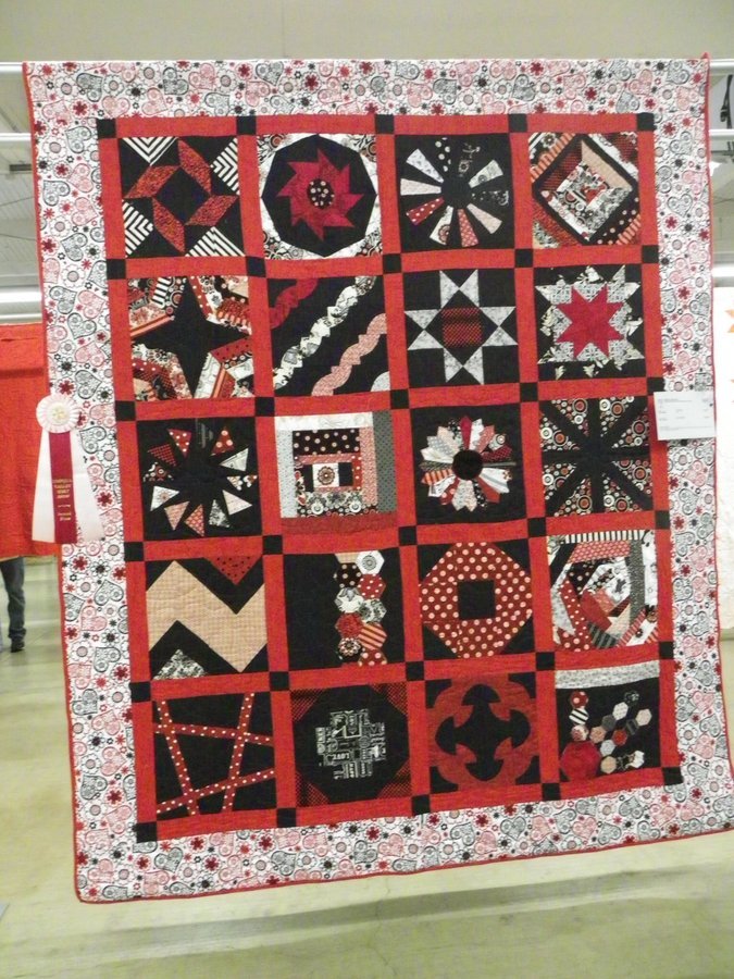 gmatloff Hearts-A-Plenty - With this quilt I decided to do it in the red black and white. It turned out that my son is getting married in Aug of 2014 and this quilt just felt right for the occasion. I won a second place ribbon which I am so proud of.