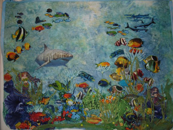 | Design Source - Description | This is an original shark picture that was printed on fabric, commercial fish fabrics to complete the design |