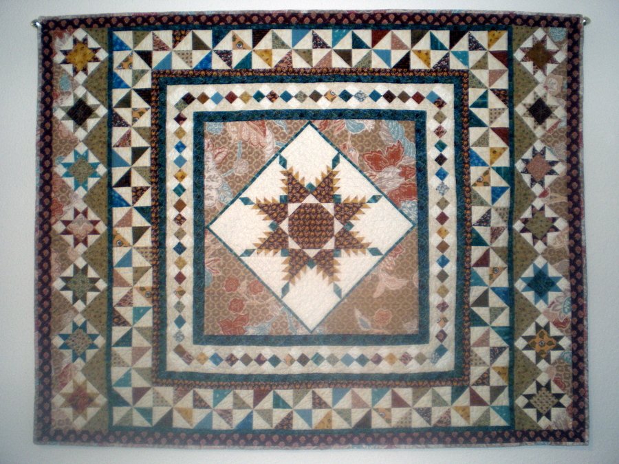 | Design Source - Description | I adapted Sue Garman's block of the month pattern to fit a specific spot on the wall of my new home. Happy with how it finished. What to do with all those premade stars I have left over. Another quilt perhaps. |
