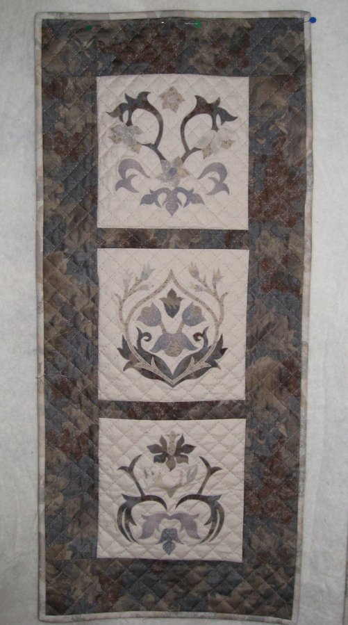 dorfymid Miniature Sampler Wall Hanging - I used my scraps from a previous quilt as a practice run before I used my William Morris fabric, I loved it so much I finished it as a wall hanging, and my William Morris fabric will now be used for something else.