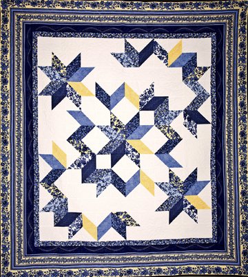 | Design Source - Description | This is the queen size version of my new "No Diamonds/ No 'Y' Seams" pattern called Cosmic Jewels. The fabrics are from the line Bermuda Blues by Timeless Treasures. Fun quilt and very easy to make. |
