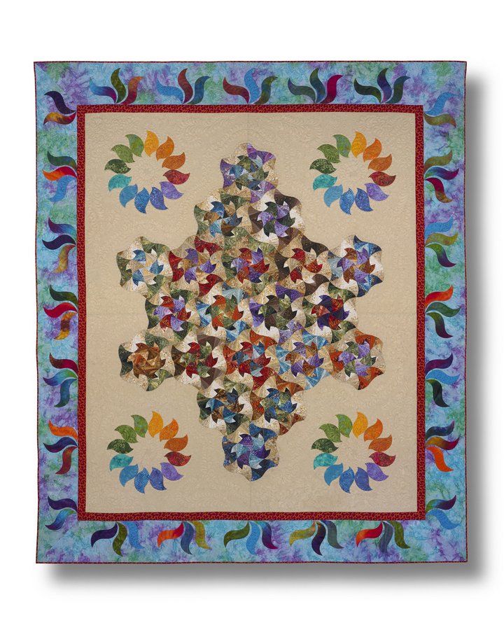 wood4mark Nessun Dorma - Nessun Dorma (no rest) was completed in 2007. This quilt was a labor of love ( 3 year project). It is machine paper pieced ( original pattern ) with hundreds of differnt fabrics of various color values. The curvie blocks were machine pieced together and the entire designs was pieced into a large single piece background fabric. All I can tell you is that you may not want to attempt this project. I am gald that I finished what I started but would never do this again. The quilt was professionally longarm quilted by Carol Selepec ( Eleanor Burns cousin ).