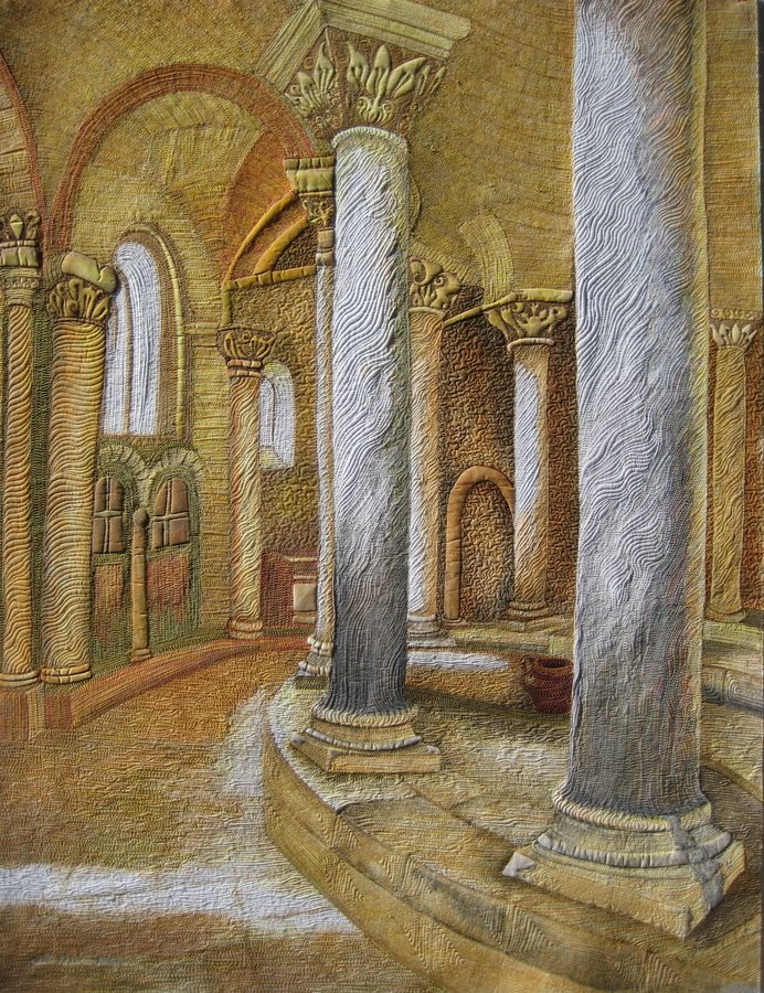 pblair St Antimo's Church - This breathtakingly beautiful 900 year old church sits in the Italian countryside in the region of Tuscany, and is surrounded by vineyards. This piece is painted in pigment ink and heavily quilted.