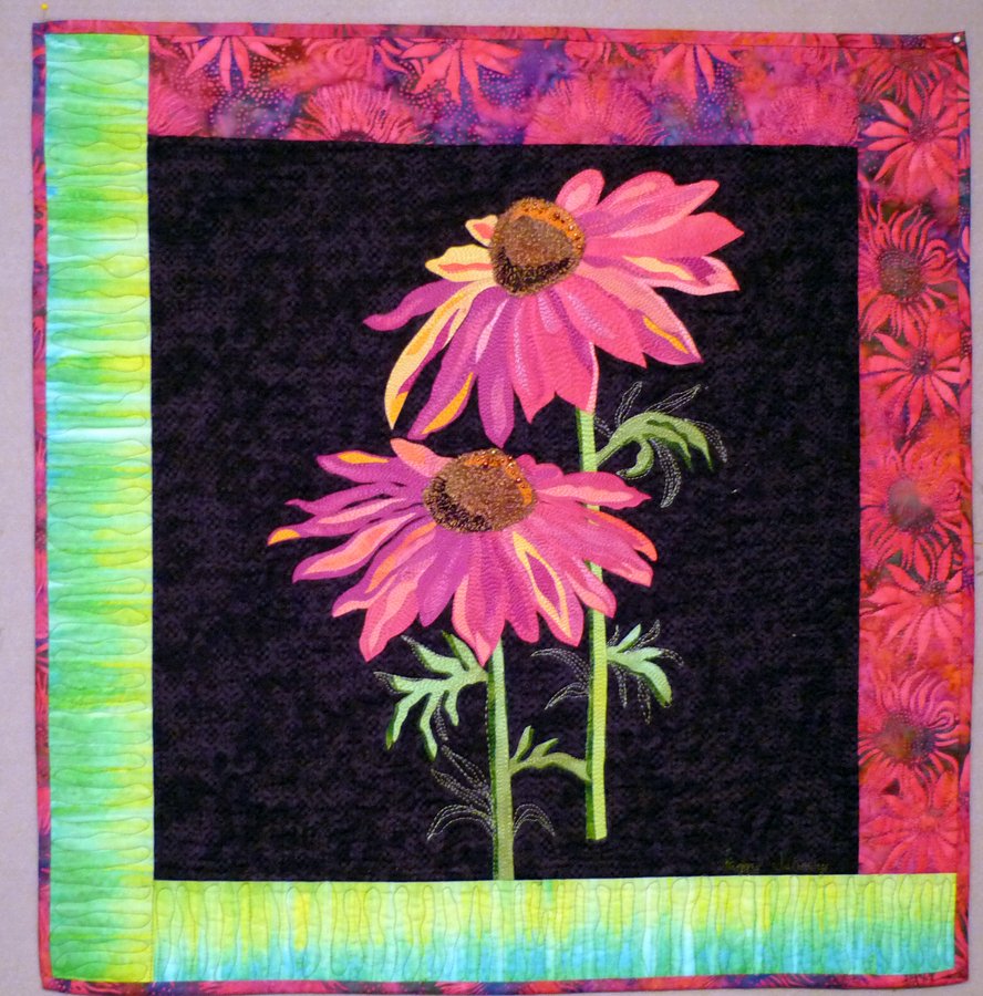 qwilltr A Ray of Sunshine - I took a Melinda Bula class in Houston this fall. It was wonderful! This is the quilt that came came from that class. I love it. It's going to be a Christmas present for my son's girlfriend's mom. It's fused, thread painted and embellished by home sewing machine by me.