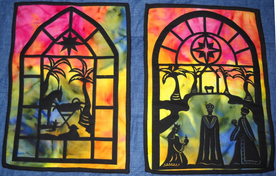 ellenceleste Christmas Quilts 2010 - Purchased stained glass cut-out appliqued on batik