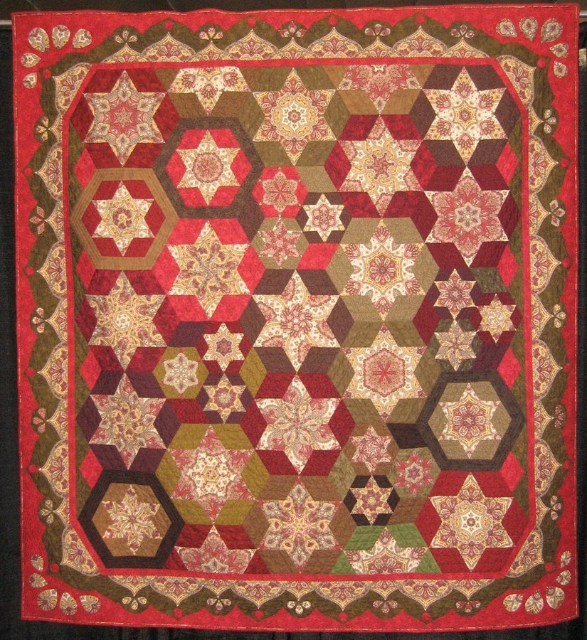 | Design Source - Description | This traditional quilt received its middle eastern flair from the original applique border. All hand pieced and hand quilted, embellished with many crystals, this quilt is a joy to own. |