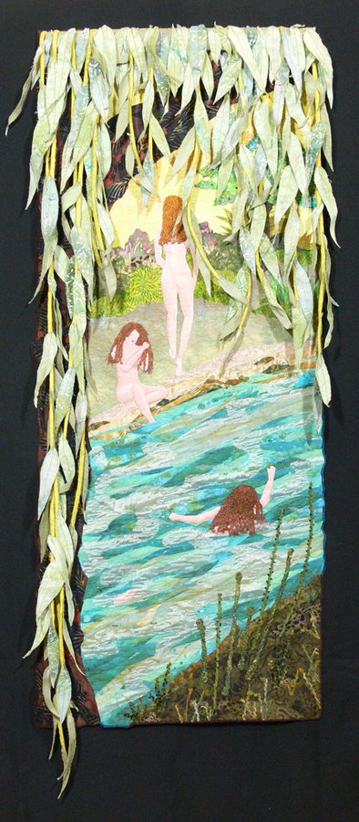 SarahAnnSmith Naiads - Made 2007, revised 2009. The Naiads are the spirits and guardians of the waters. 3-D willow branches dance in front of the quilt.