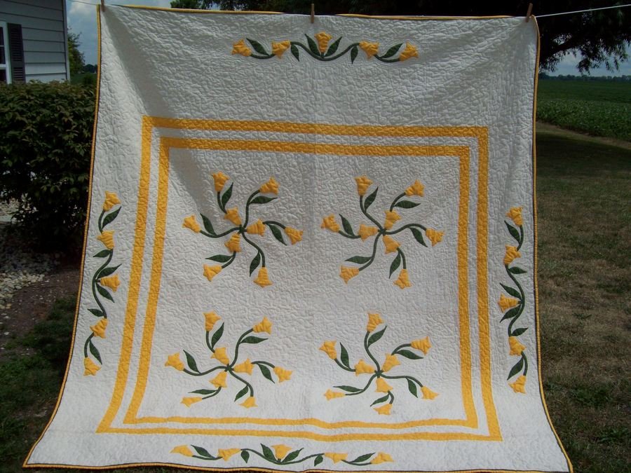 | Design Source - Description | I made this quilt for my mother-n-law's 80th Birthday this year. I drafted the pattern, inspired from Marie Webster's Wind Blown Tulips. |