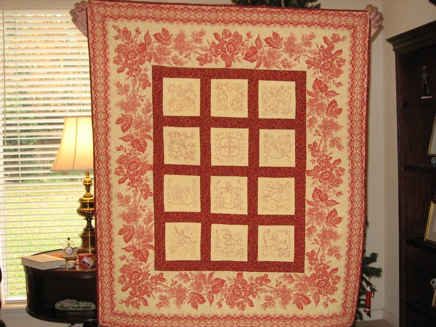 | Design Source - Description | This was last years Christmas present to our dear friends. I finally finished the quilting and binding two days ago. I should have named it "The Twelve Months of Christmas." |