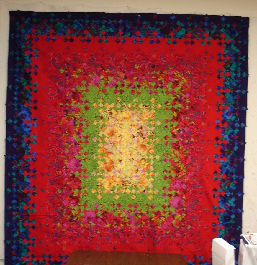 QuiltFan Blooming Nine Patch - I fell in love with this pattern when I saw a sample in my LQS. I quickly signed up for the class that was being offered and was able to complete the top within 3 weeks. I'm just waiting til after the holidays to send it to get quilted.