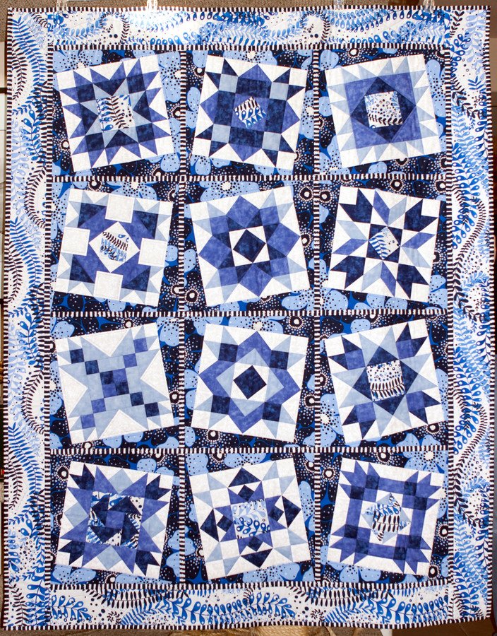 Kristin BOM 2009 - Meissner's Folsom store 2009 block-of-the-month. Blocks designed by Helen Hardwick. I designed the setting. This is a reversible quilt.