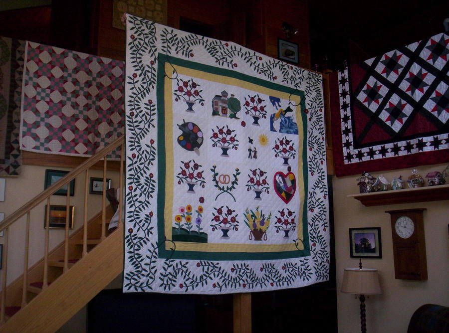 pattiqultmkr1 Where Love Resides 2010 - I started this quilt 11 years ago at the request of my youngest daughter, Betsy, who said she wouldn't get married until she was at least 30 yr. old. I told her it would take me that long to make it as I was no appliquer. Well, 11 years later Betsy is engaged with a wedding date set for Oct. 2010. She and her fiance, Jeremy will receive this quilt as their wedding gift from me.