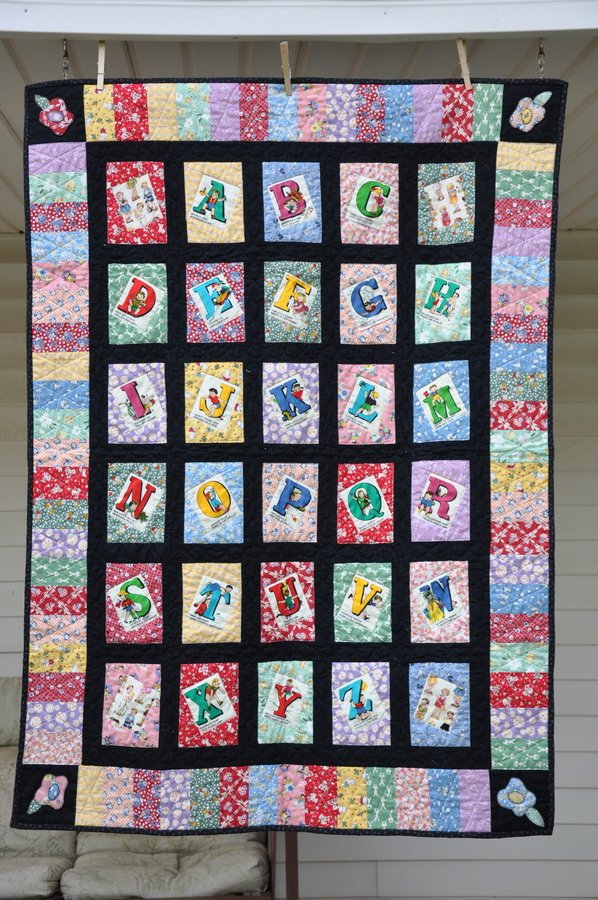 Mariekre Ellison's Alphabet - This baby quilt was made for my grandaughter, Ellison using alphabet pre-printed panel based on a Lynda Milligan, Nancy Smith design in Quiltmaker Magazine #104. Machine pieced, machine and hand quilted, bamboo batting.
