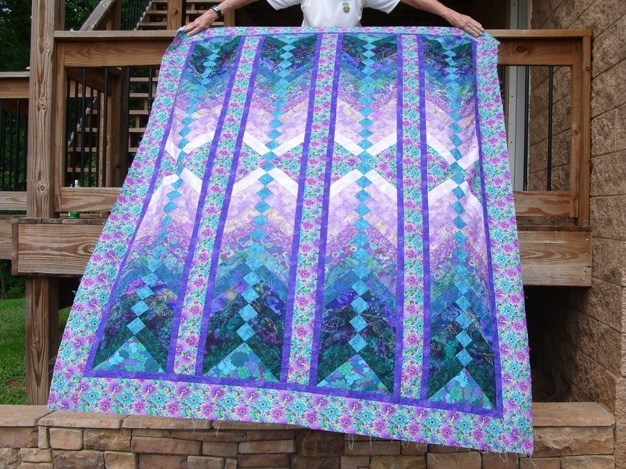judithannequiltz Becca's French Braid - Rebecca's favorite colors are purple, blue and green. The pattern is from the book French Braid Quilts by Jane Hardy Miller. Jane is knows to me as Rusty from the Quilt Scene in Miami, Fl. I gave Rebecca her quilt in December and she loves it.