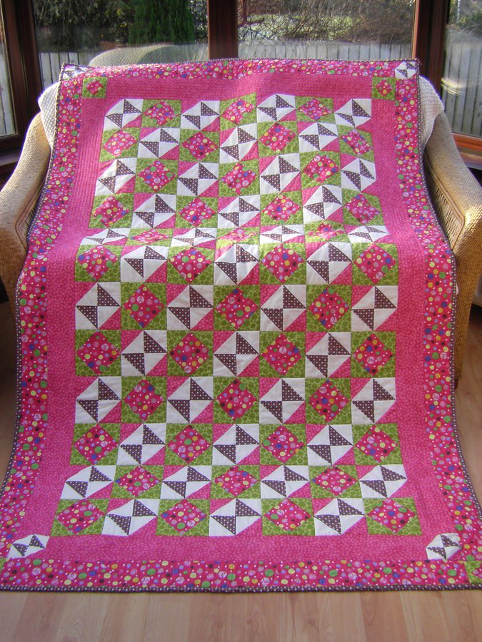 janmax Auntie Una's - My younger sister had just died of breast cancer when I was asked to make this quilt. Unbeknown to me, after purchasing the fabric I realised the Breast Cancer pink ribbon symbol was detailed throughout the pattern. Working on this quilt was very theorputic and challenging.