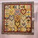 loveshearts Reese's Hearts - I was asked to make a quilt from Robyn Pandolph's fabric "Bed of Roses" using all the "stack," as a sample for the quilt shop, Sue's Rags. This pattern was romantic and I was hoping for a granddaughter to be born. (The baby turned out to be a lovely boy) so I chose this pattern, which showed off the line of fabrics. The owner of the shop wanted a wall hanging rather than a quilt, so here it is. Eventually, my daughter had a little girl to whom this quilt is dedicated.