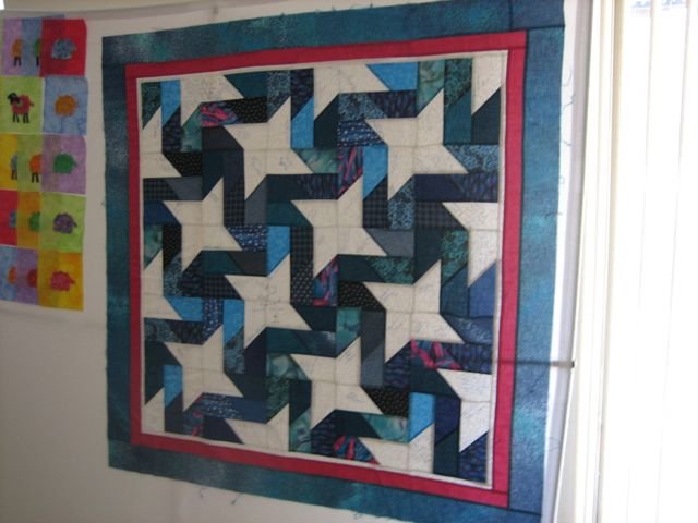 Cornwoman Seeing Stars - This was a signature quilt that I made for my mother when she remarried in 1995. Everyone who came to the reception had an opportunity to write a message and sign it in the white stars formed by the pattern.