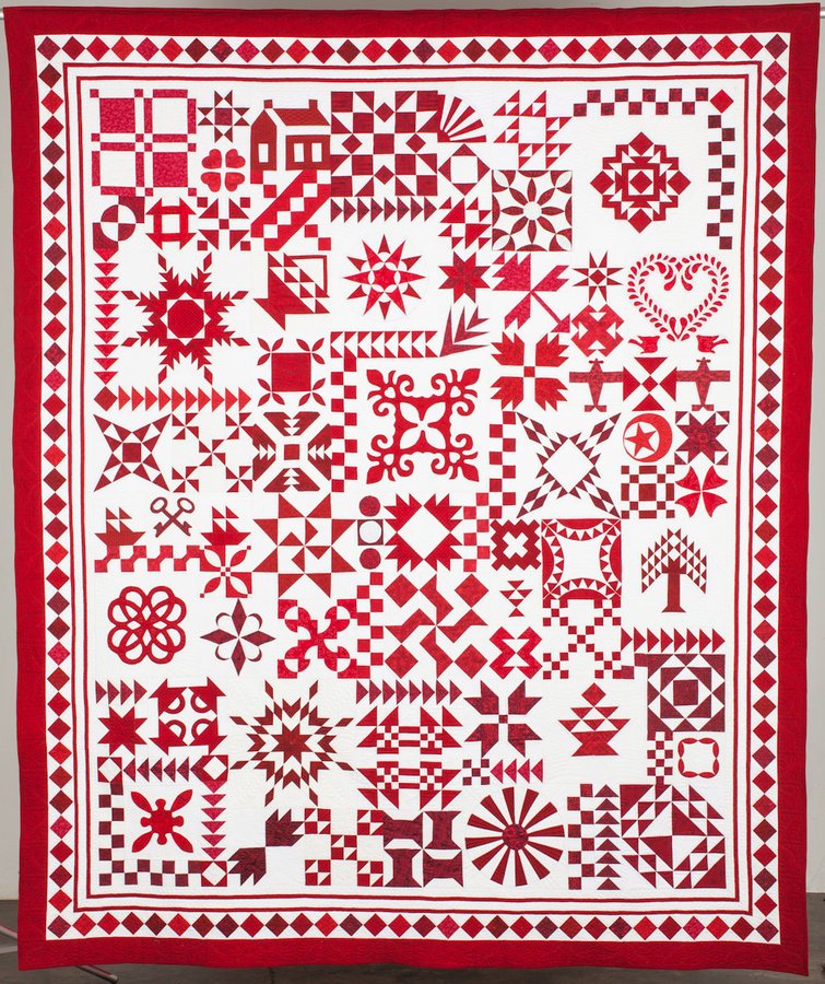 bbquiltmaker Red and White--By the Numbers - Internet BOM from Justtakes2.com. This is a tribute to the Infinite Variety exhibit in NYC, March 2011. There are 2770 pieces and 59 fabrics in this quilt.