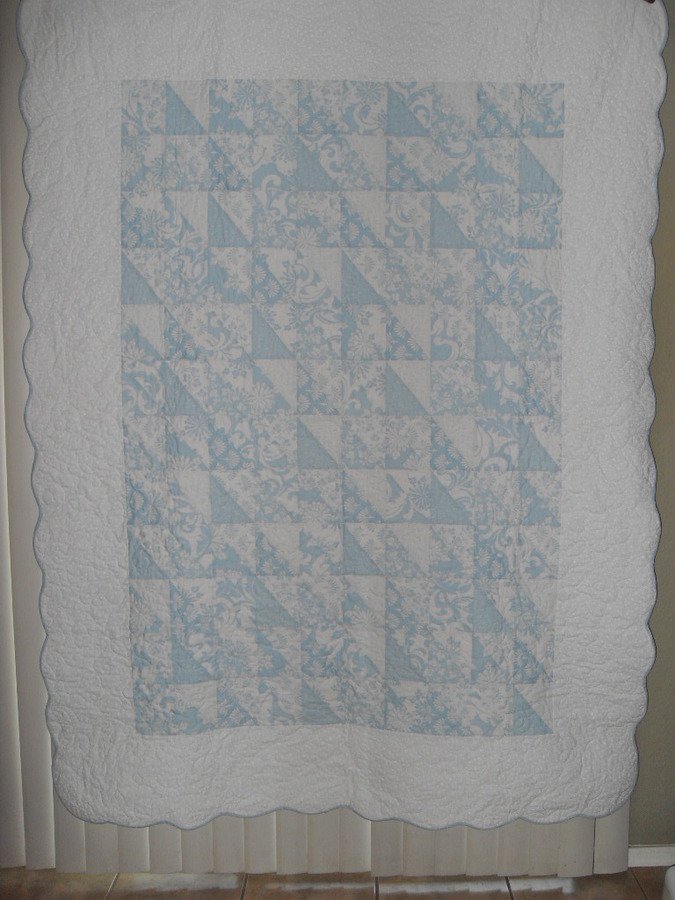 yankees42 My "Blue Spa" Quilt - I just got this for Christmas...lucky me! My mom made this for me and a matching one for my daughter and sister. Yup she made all three and she made all of them between Thanksgiving 2009 and had them all finished the Sat before Christmas 2009...oh ya she's good! She made personal individual labels with a positive thought on each...oh yes tears were involved! Thanks Mama it's so beautiful and sentimental! These kits "Blue Spa" were bought at Two Thimbles Quilt Shop in Bellingham WA. "Reflections" The fabric and pattern were designed by Karen Montgomery