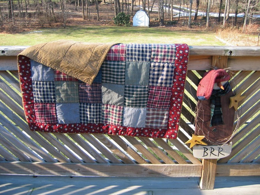 | Design Source - Description | I made this for my Great Nephew. It is just a basic patchwork quilt with a border. Made from homespun and stitched in the ditch with my sewing machine. |
