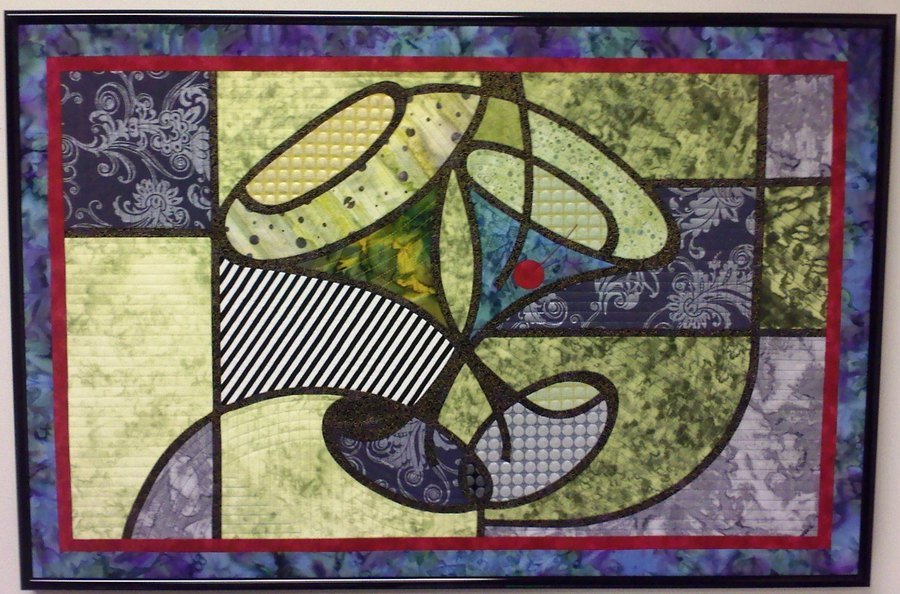 Miles661ca Cheers! - Subtractive-reverse applique technique from Art Glass Quilts by Julie Hirota. This piece is framed.