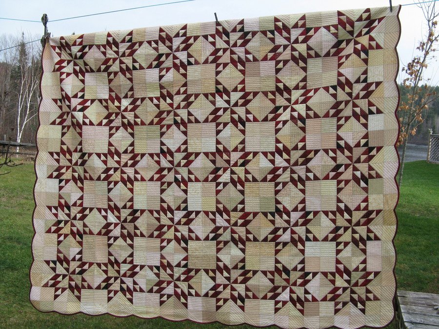 brendap Elegant Star - I fell in love with this quilt. Most of the quilting on it is 1/2 inch apart. I was inspired to do this after taking a machine quilting course from Harriet Hargrave at the 2008 Vermont Quilt Festival. It was very intense and took well over a month to do. The first time I did a scalloped edge.