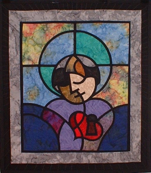 Miles661ca Untitled self-portrait - Subtractive-reverse applique technique from Art Quilts by Julie Hirota.