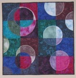 annamariebanana Buoyance - This was supposed to be a practice quilt. I used mostly hand-dyed fabrics from my stash. Hubby helped me with the design. It began wiith more symmetrical circles, then was changed to this design.