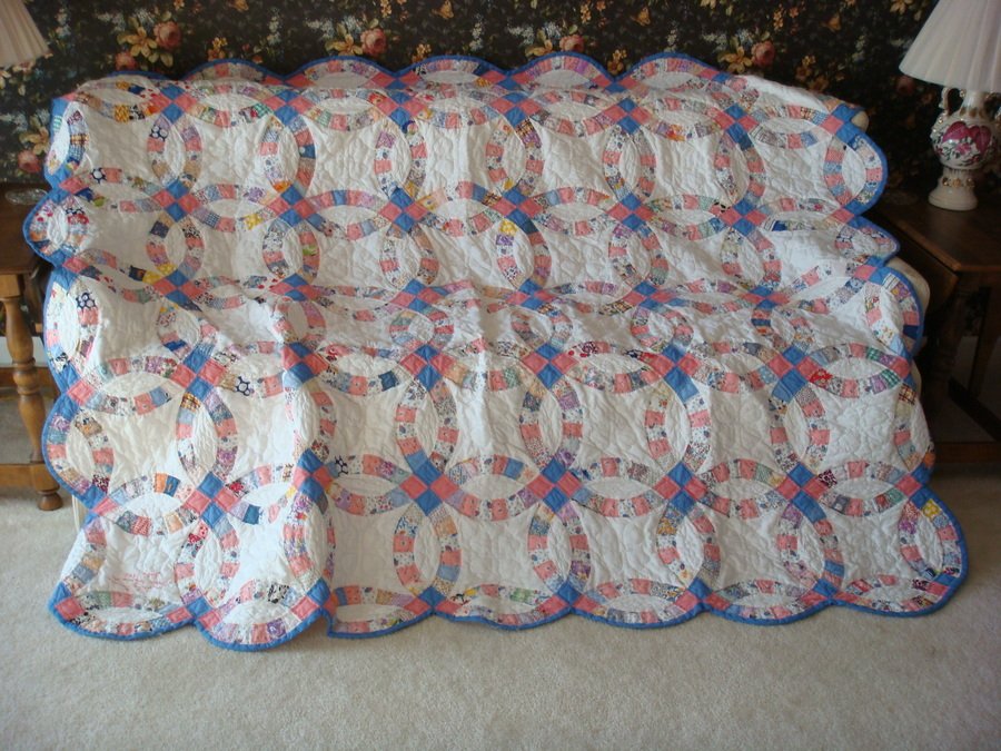 Onalee Antique Quilt - I was hired by a friend to hand quilt this quilt. It was made by her husband's Great-Grandma. She hand pieced it at age 90 in July 1941. I quilted it using a traditional 1/4 inch in on all those print fabrics. I did a heart design in the background fabric.