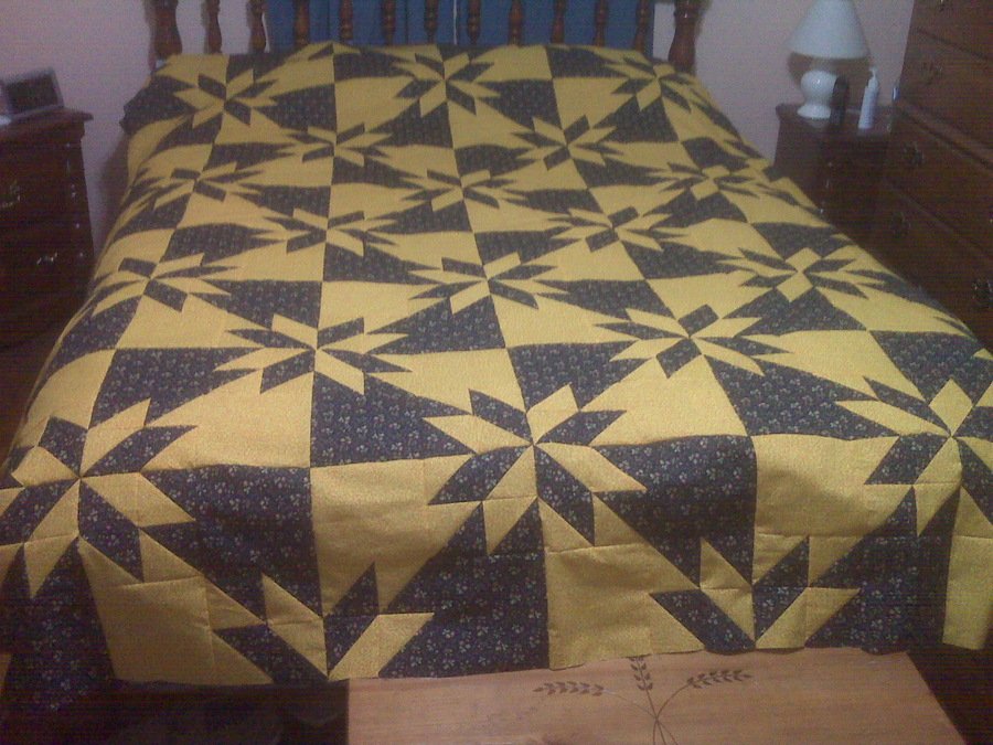 ambrosia No Name - This quilt got away from me in size. So I've been a little imtimidated to start the quilting on my little home machine. Im getting a new Janome in April, so I think it will probably wait until then. But I was very pleased with the outcome. Another new favorite! Since I'm a new quilter, I'm still learnig, and the biggest thing I learned with this quilt was that going a little slower and paying a little more attention to my 1/4" gives MUCH better seam results. I was excited every time I sewed a new row together and the seams still lined up. I didn't have any plans for this quilt when it was started and was asked what I was going to do with it, and I said I'd probably give it to my boyfriend's mother. But now that the top is done, it's the best one I've done so far and I don't want to give it away. Maybe that's why I'm putting off quilting it.