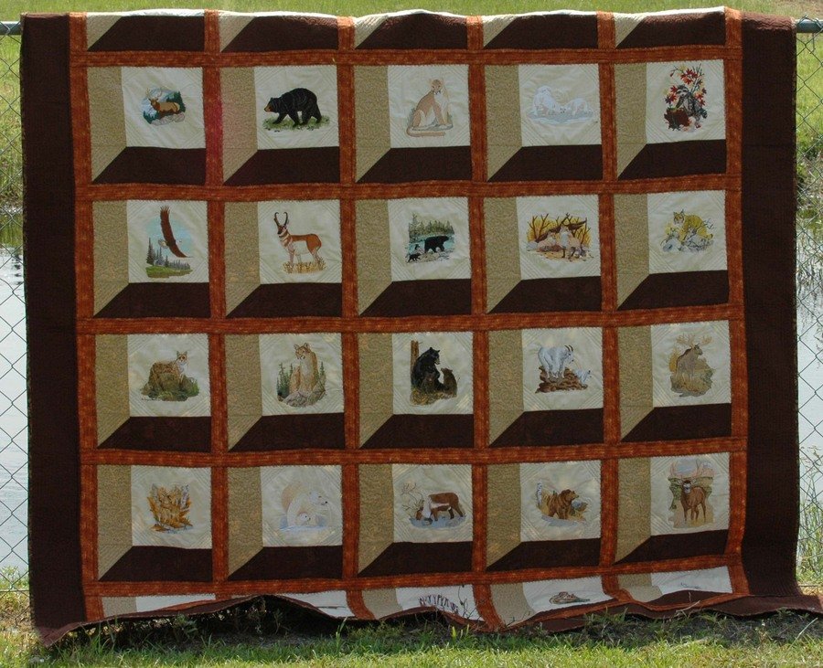 marsuz North American Wildlife - I use my love of machine embroidery in making my quilts. I also love wild animals and I have the best of both worlds in this quilt.