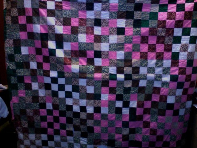 | Design Source - Description | My first quilt. Tried different ways to make squares (strips, individual squares, multiple strips) and sew them together with different techniques. This is truly an experiment in quilting. |