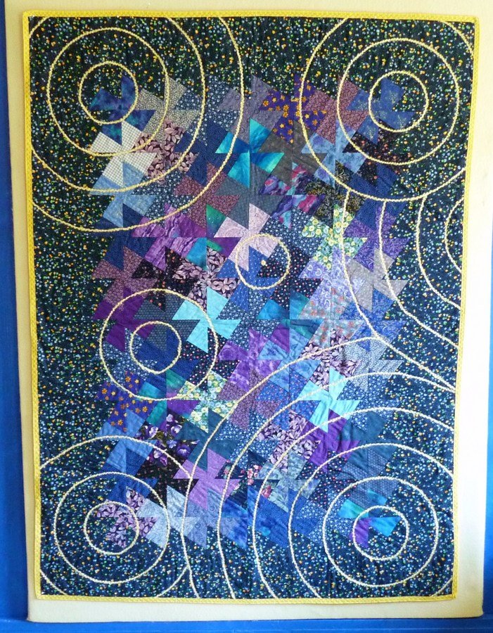 PennyDyes "Raindrops - Made from scraps to try pattern. Decided to try something different for quilting. I couched yarn for the quilting. Given to a friend just recently diagnosed with breast cancer. Her comment was that the lap robe was full of hugs and good wishes.