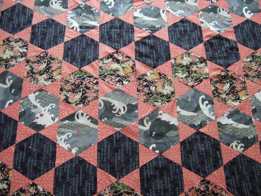 Lawnmower Coral Seas - I believed I was making this quilt pattern up because I cut my own templates out of cardboard etc and then when I completed it I saw the pattern everywhere. I suppose it is a common layout.