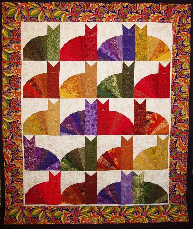 | Design Source - Description | Fun and easy fan block with a pieced background that's not applique nor curved piecing! Each cat came together quickly. Great for scraps! |