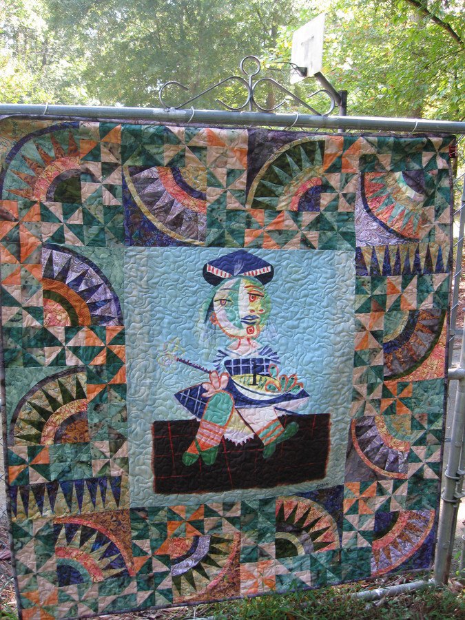 kudzuquilter Peachtree Picasso - I purchased the center panel from a fabric store when a Picasso exhibit was showing in Atlanta. I put it away for many years before finally designing a wall quilt with it.