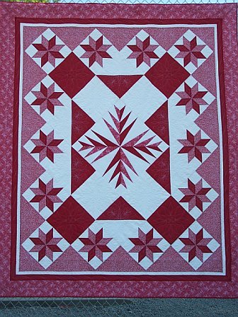 imquilting Stars with a Vision - I made this quilt using blocks that were started by Deb King before she passed away with cancer. Deb made the star blocks and then I designed the rest of the quilt on EQ6. The quilt was donated to the North Central Missouri College as part of their scholarship fundraising. The center is paper pieced on machine. The star blocks were all hand pieced.