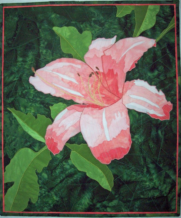 Burnseye Pink Lily - Hand dyed fabrics, thread painting