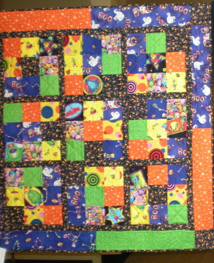 andimc13 Halloween Sudoku - Laid out 3 inch squares using rules of sudoku. Entered in 2009 Arizona Longarm Quilters President's challenge. The theme was Anything Geometric.