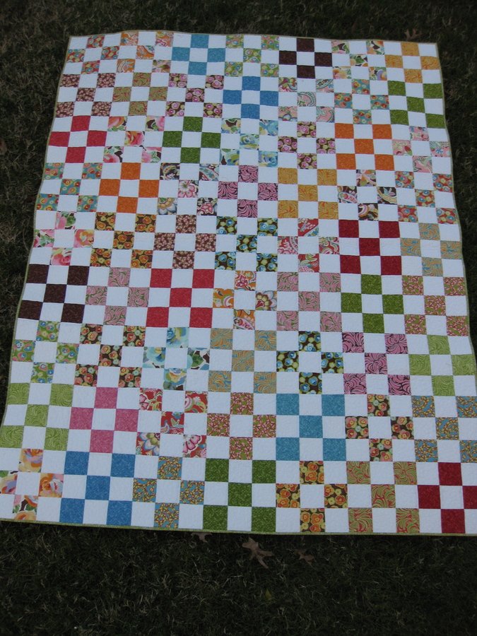 messygoat Cheaper than Therapy - I used leftovers in my stash from a diaper bag I made for my sister-in-law and had a good time using Moda Bakeshops "9-Patchtastic" tutorial to quickly put the blocks together. This project kept me sane during a particularly trying rehearsal process for a play.