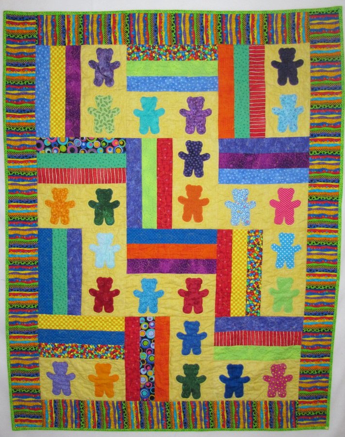 | Design Source - Description | I purchased this kit from Keepsake Quilting. It uses that company's die-cut shapes, which I fused onto the quilt top then stitched around each bear. Very cute and quick. |