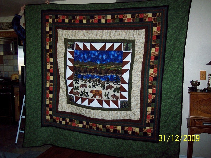 quiltahollic Montana Dreams - This was an idea that I had and was able to successfully build on. The quilt became a gift to my in-laws. I was very excited about the finished product. It is from a scenic area I remembered in Montana near my home. It is king size.